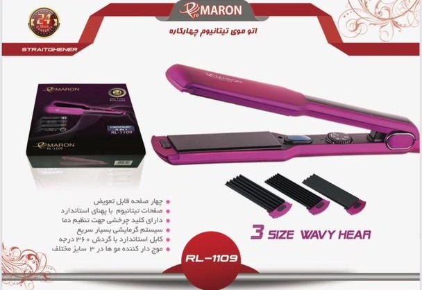 همه ما دوست داریم هنگامیکه موهایمان را اتو میکنیم به موهایمان آسیبی وارد نشه واز صدمات وارده به آن جلوگیری کنیم که این مسئله بهشدت تحت تأثیر جنس و کیفیت متریال بهکاررفته در اتو مو است. و در صورت انتخاب درست نهتنها موهای ابریشمی خواهیم داشت بلکه سلامت موها حفظ میشود. که اتو موی RL-1109 از برند پرومارون از این قاعده مستثنا نیست و تمامی محصولات آن مورد تأیید استاندارد اروپا CE قرارگرفته است. یکی از ویژگیهای مهم این اتو مو برخورداری از چهار صفحه قابل تعویض است که یک صفحه جهت صاف کردن مو و سه صفحه دیگر جهت مدل دادن و موجدار نمودن مو در سه طرح مختلف است. که این صفحات از جنس تیتانیوم و نانو سرامیک با پهنای استاندارد و دارای خواص درمانی است و به رطوبت طبیعی مو آسیبی نمیزند بنابراین ضمن حالتدهی به موها، درخششی ابریشمی به موها میدهد و از وز شدن موهایتان پس از اتوکشی جلوگیری میکند. و حرارت را به شکل یکسان در همه جای صفحه پخش میشود. علاوه بر این دارای سیستم گرمایشی بسیار سریعی است که در مدت کمی به 230 درجه خواهد رسید.