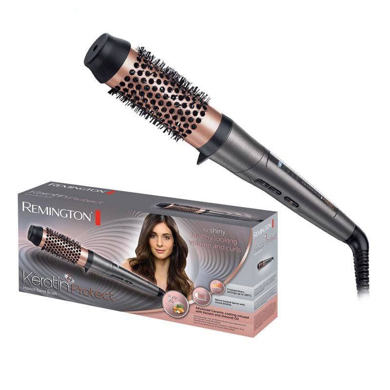 امروزه دستگاه های بسیاری برای حالت دادن به موهای شما طراحی شده . که هر فرد با واسطه راحت بودن با دستگاه می تواند از آن استفاده نماید.شما ممکن است برای حالت دادن به موها از یک سشوار و برس گرد استفاده نمایید . که در این حالت این کار توسط خودتان و در منزل ممکن است مشکل بوده و زمان زیادی را صرف اینکار نمایید و در عین حال به نتیجه مطلوب خود نرسید .اما رمینگتون با در نظر گرفتن نیاز های بانوان محصولاتی را طراحی می کند . تا بانوان بتوانند از آن ها براحتی استفاده نموده و کارایی لازم را از دستگاه بگیرند.این برس گرد که با تیغه هایی از جنس سیمی سرامیک بوده و با روغن بادام پوشیده شده ، براحتی داغ شده. و شما با گرداندن آن روی موهای خود می توانید از آن برای حالت دادن استفاده نمایید.برس گرد رمینگتون با تیغه های به قطر ۳۸ میلیمتری فرهای زیبایی را بر روی موهای شما ایجاد میکند.این دستگاه دارای ۵ درجه تنظیم حرارت بوده که میتوانید از دمای ۱۴۰تا ۱۸۰ آنرا تنظیم نموده و با تناسب با موهای خود استفاده نمایید.