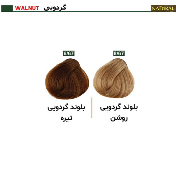 | رنگ مو | رنگ بلوند گردویی تیره شماره 67-6 ,رنگ بلوند گردویی روشن شماره 67-8 |