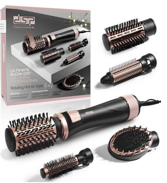 دارای ۵ برس مختلف برای تمام نیازها از موی کوتاه گرفته تا بلند. توان ۱۰۰۰ وات و خروجی گرم و سرد سیم اتصال به برق ۱۲ متری و تنظیم در دو دور موتور تند و کند.