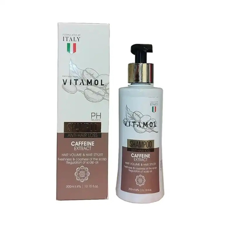 شامپو ضدریزش کافئین ویتامول مناسب انواع مو، حاوی مقادیر زیادی کافئین است. کافئین برای متوقف کردن ریزش مو و تحریک سلول های مو بسیار موثر است. این شامپو همچنین موجب افزایش گردش خون در کف سر شده و این گردش خون محرک سلول های مو برای رشد است. همچنین این شامپو با تقویت و آبرسانی ساقه از شکنندگی مو و خرد شدن آن جلوگیری میکند.