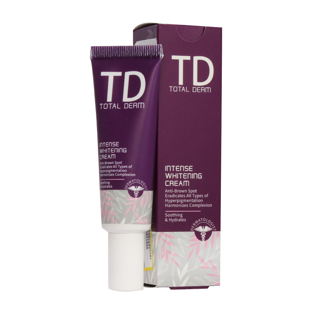 کرم روشن کننده و ضد لک قوی توتال درم با لایه برداری پوست انواع لک ناشی از جای جوش، لیزر، آفتاب سوختگی و زخم را به مرور از بین برده و موجب شفافیت و روشن شدن پوست میشود.