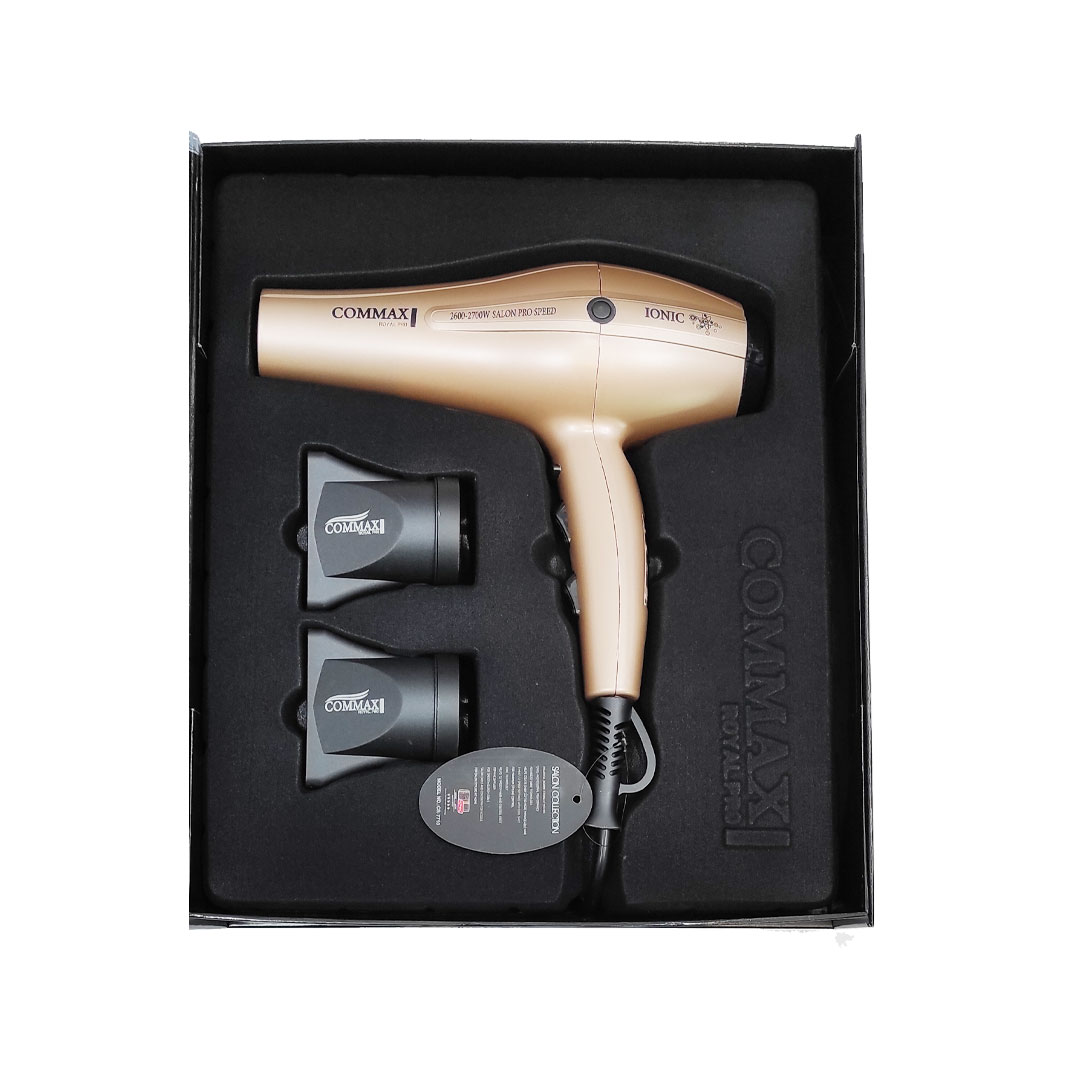 سشوار سالنی 2600 وات کوماکس COMMAX دارای موتوری با توان 2600 وات می باشد که جزو موتورهای پرقدرت محسوب می گردد. موتور این سشوار از نوع AC می باشد. این موتورها برای مصارف آرایشگاهی و حرفه ای مناسب می باشند و باید هر ۶ تا ۱۲ ماه سرویس شوند تا قدرت پرتاب سشوار افزایش پیدا کند. این نوع موتورها از ۴ بخش هسته، بدنه، ذغال و پروانه تشکیل می شوند. که هر ۲ تا ۳ سال ذغال آن ها باید تعویض گردد.